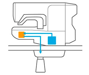 • Lubrificação automática na parte inferior do cabeçote e sistema seco na parte superior. Evita o problema de manchas de óleo nas peças.