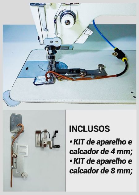 - Regulagem eletrônica do transporte superior para sequência de costura;