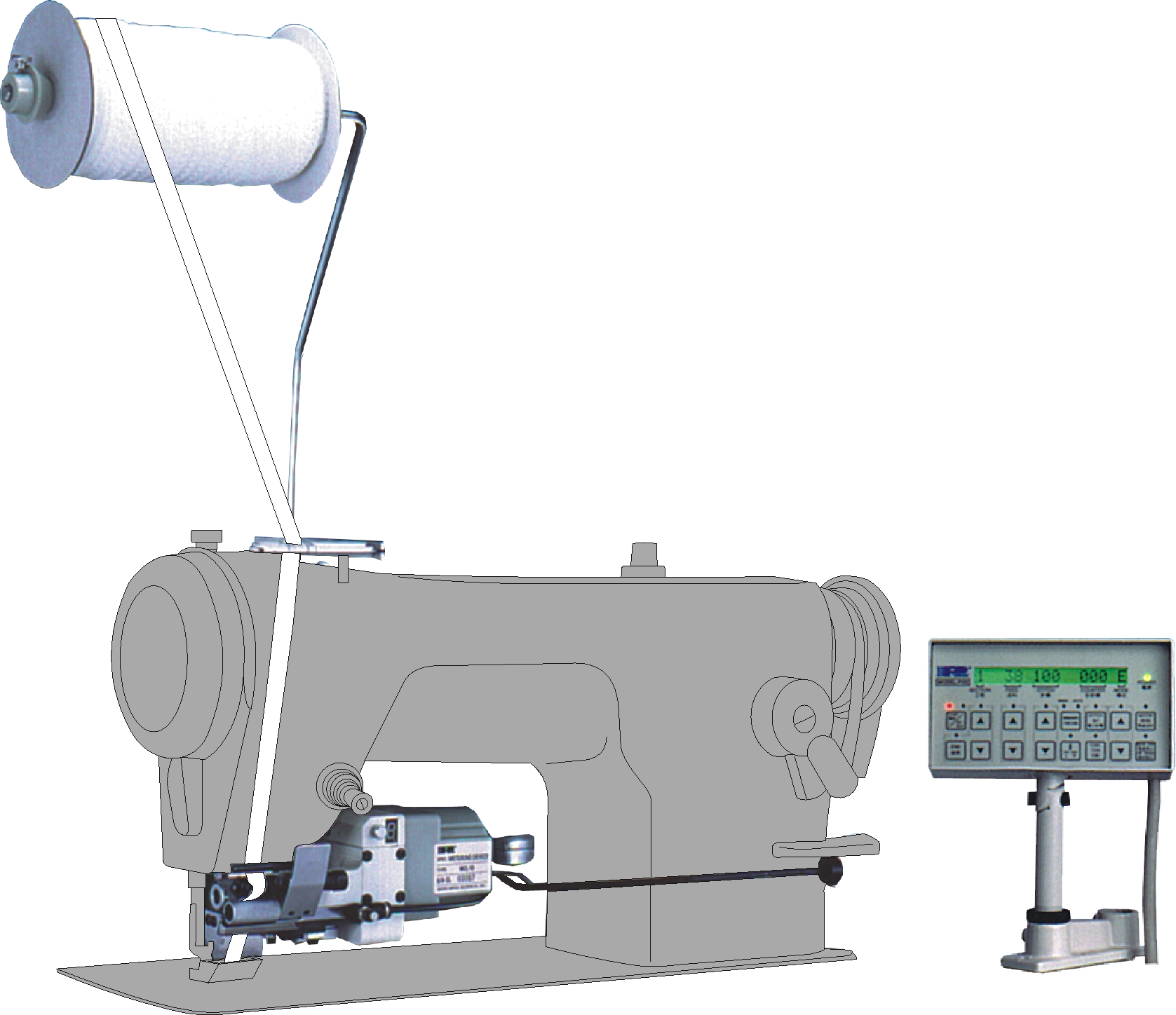 - Alimentador de elástico eletrônico com tesoura de corte automático e programável.