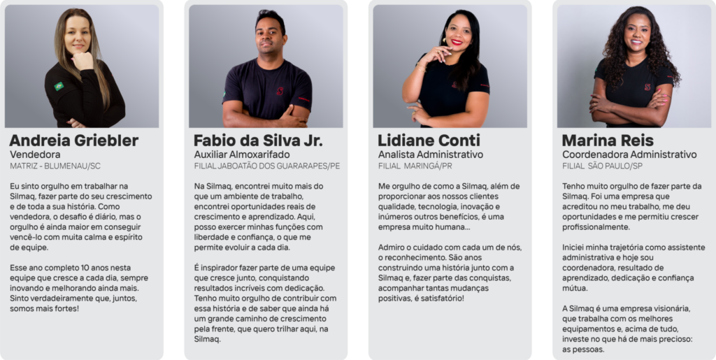 Na SILMAQ, valorizamos a transparência e a equidade. Temos orgulho em afirmar que não há diferença salarial entre homens e mulheres em nossa empresa, conforme se mostra no Relatório de Transparência Salarial compartilhado abaixo.