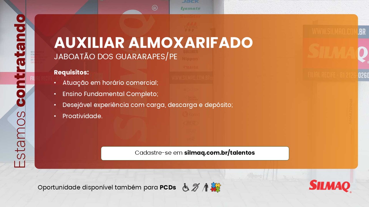 Buscamos profissional para atuar como Auxiliar de Almoxarifado e completar nosso time em nossa filial de Jaboatão dos Guararapes/PE.
