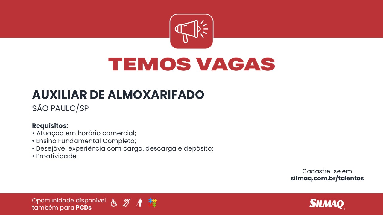 Procuramos um Auxiliar de Almoxarifado para fortalecer nosso time da filial de São Paulo/SP. Você é apaixonado por desafios, gosta de fazer a diferença e deseja fortalecer sua carreira com a experiência em uma empresa reconhecida nacionalmente? Então o seu lugar é aqui!
