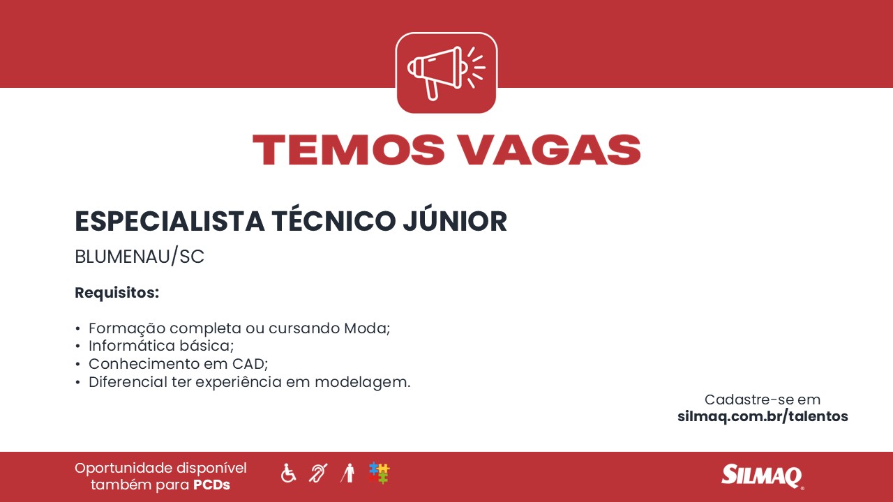 Procuramos profissional para atuar como Especialista Técnico Júnior e completar nosso time na matriz, em Blumenau/SC com início em 2026. Você é apaixonado por desafios, gosta de fazer a diferença e deseja fortalecer sua carreira com a experiência em uma empresa reconhecida nacionalmente? Então o seu lugar é aqui!